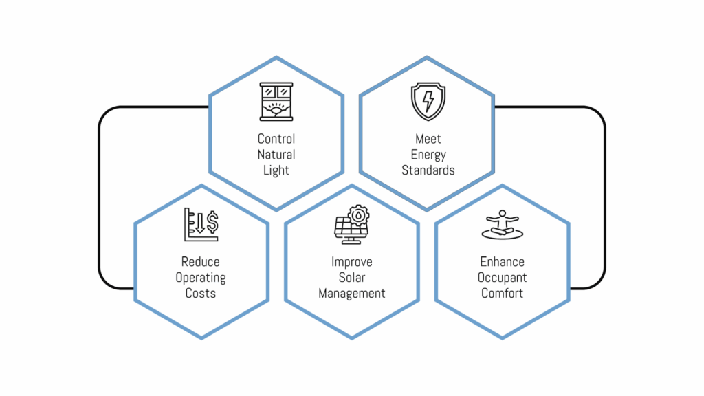 Effective shading stabilizes indoor temperatures, lowers cooling loads, and reduces reliance on artificial lighting, directly cutting overall operational expenses.